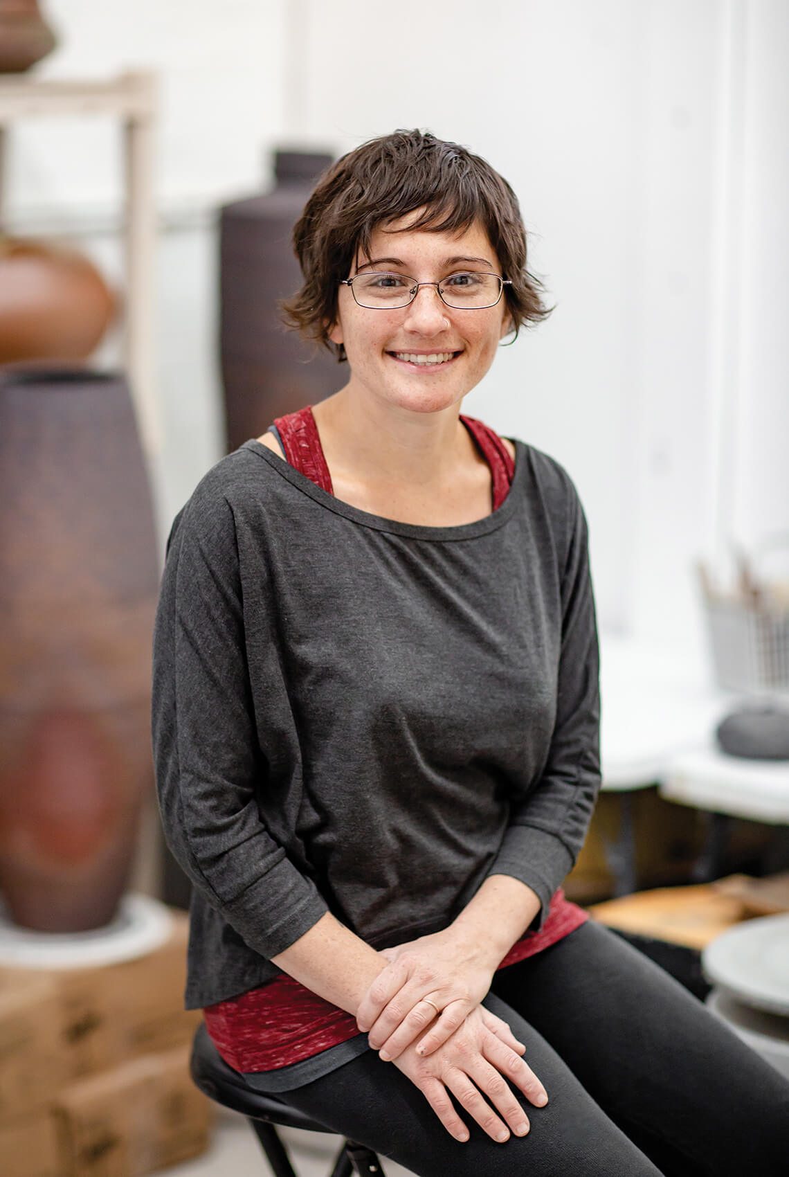Tori Motyl is always on the hunt — she’s found wild clay on hikes, in friends’ gardens, and at construction sites. Her pots let the landscape shine through. photograph by Tim Robison
