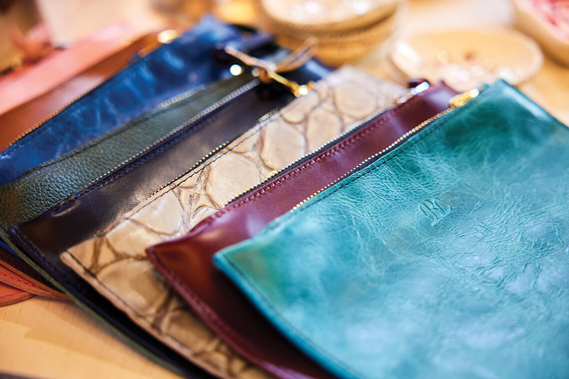 Blythe’s own leather clutches. photograph by Joey Seawell