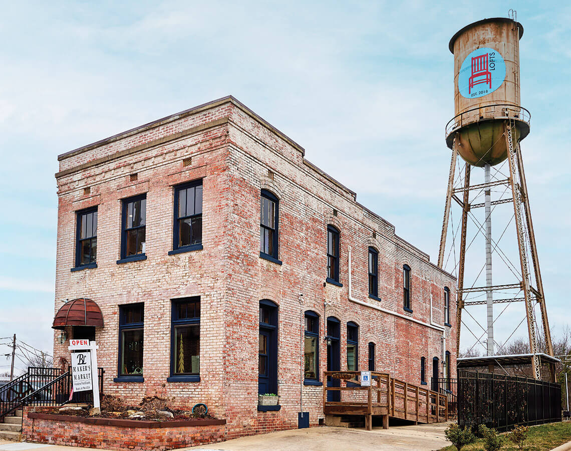 She’d always loved the familiar downtown building that once served as the business office for the former Lambeth Furniture factory next door. She liked the beautiful brick exterior. But now it was run-down, dilapidated. “And if there’s one thing that I don’t like seeing, it’s a building just sitting there, falling in,” she says. “I cannot stand it. I just want to get in there and repurpose it, put a modern-day use on it.”