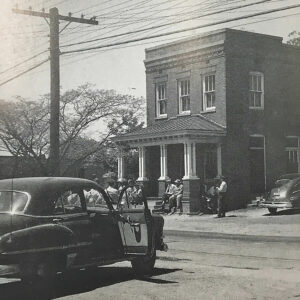 In 1946, workers at the Lambeth Furniture factory gathered on the porch of the company’s office building which now houses BL Maker’s Market. Photography courtesy of THE CECIL HIATT FAMILY VIA BLYTHE LEONARD
