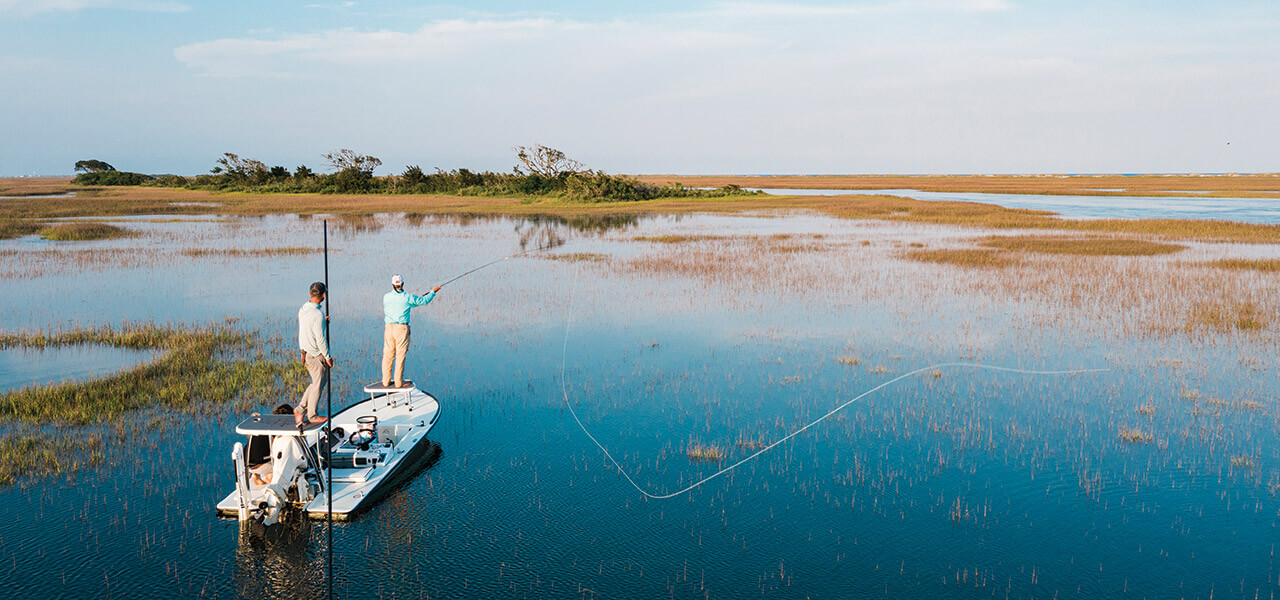 But the idea that sharing the spirit of Laissez les bon temps rouler could be a career — guiding as a legitimate job choice and professional pathway — didn’t occur to him until he was in college at Appalachian State University. There, he managed his class schedules so he could guide trout anglers three or four days a week through Foscoe Fishing Company, a de facto incubator for many North Carolina guides. He spent a season guiding in Alaska and, after college, guided in the North Carolina and Tennessee mountains and managed a fly shop in Augusta, Georgia. Along the way, he visited the Wilmington area with a friend who had a family home on Figure Eight Island. “Which is really unfair,” he laughs, “to fall in love with a place based on Figure Eight Island.” In 2004, he and his wife, Francesca, moved to Wilmington, where he co-owned the landmark Intracoastal Angler shop.