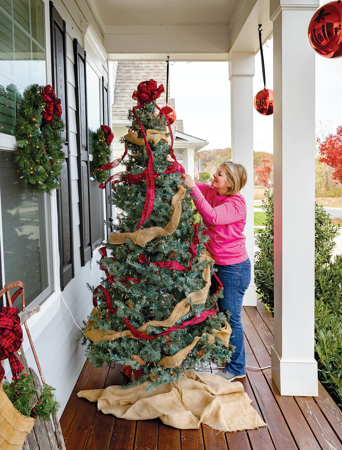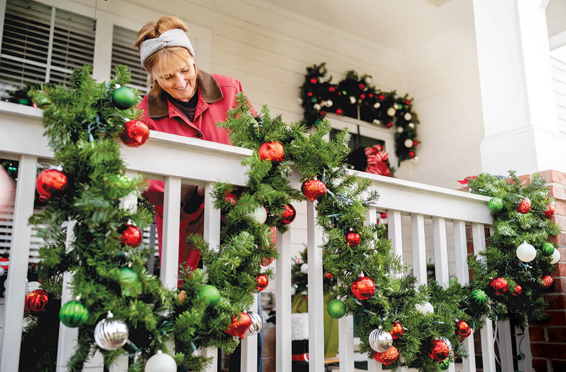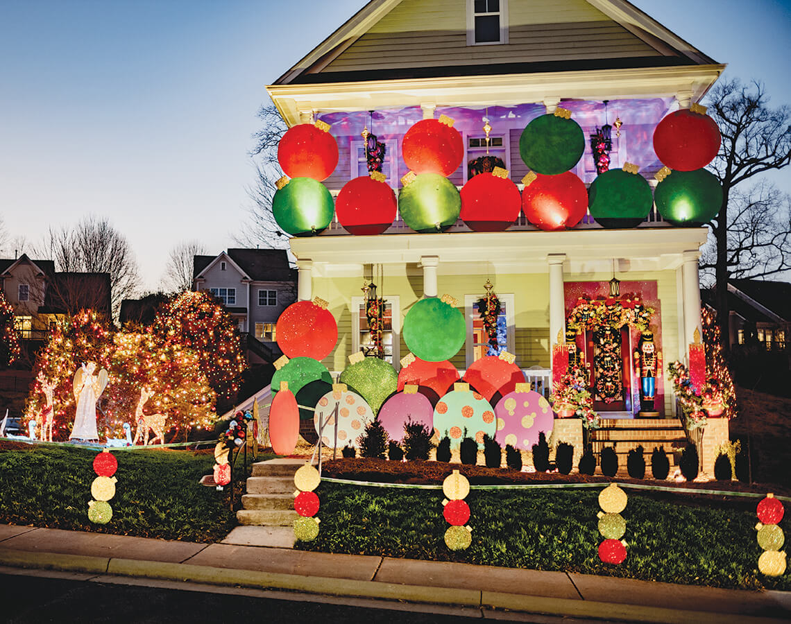 Bobbie Garn’s decorations always include perennial classics like garlands and a pine tree strung with 4,000 lights — as well as something new and different every year. She loves celebrating Christmas in McAdenville. “I think Hallmark should do a movie here sometime.” photograph by Charles Harris