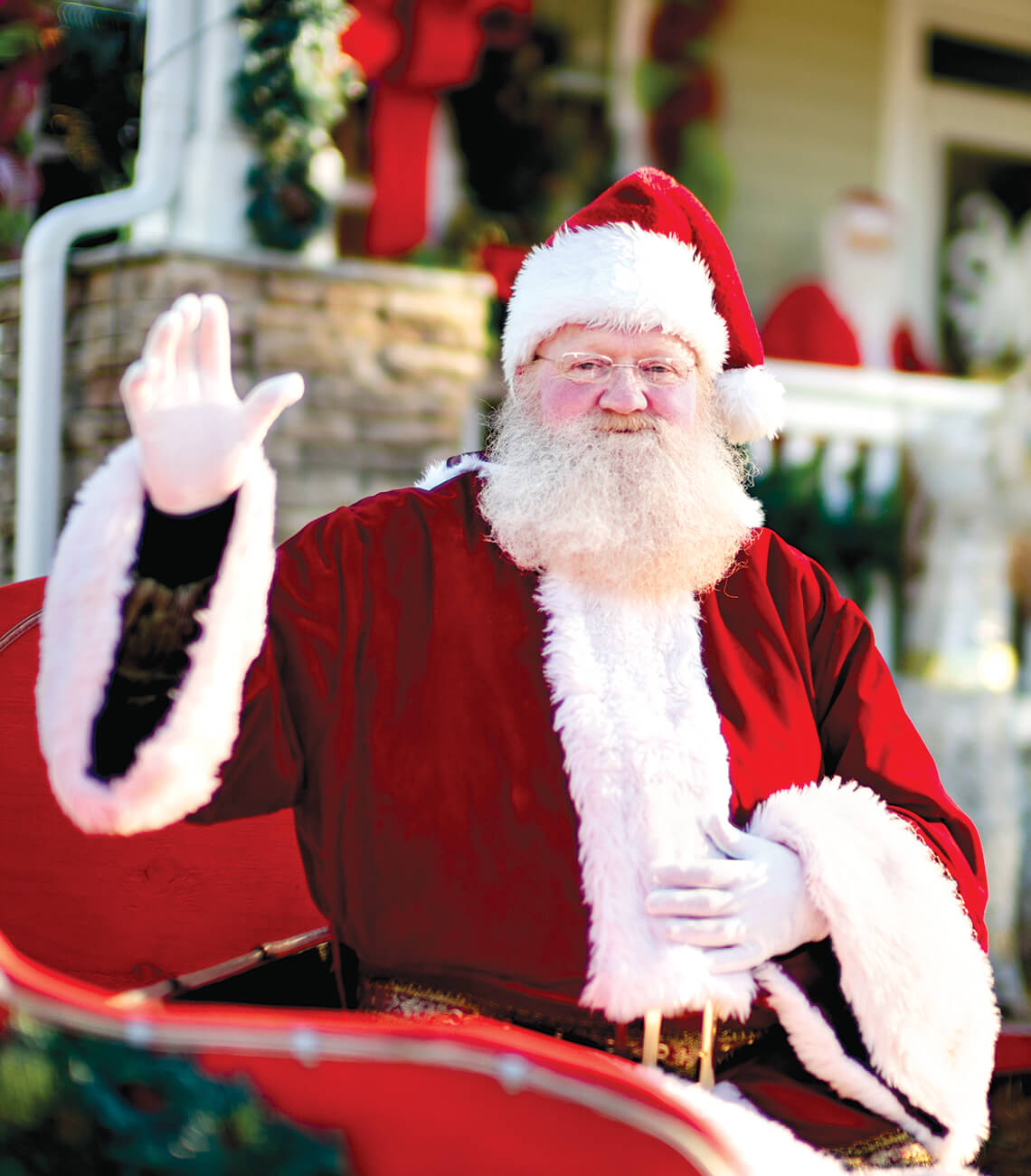 Say hi to Santa and catch some other sweet scenes around Christmas Town. Even Belle the dog was feeling festive last year. photograph by Charles Harris