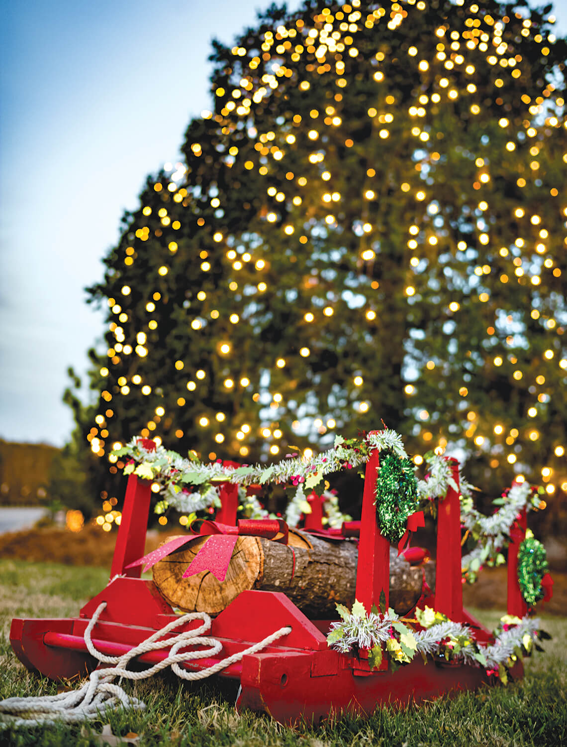 There’s at least one holiday tradition in McAdenville that’s even older than the lights. In the late 1940s, William and Catherine Pharr visited England, where they attended a Yule log celebration and brought the idea home with them. Since 1950, children have pulled a Yule log through town on a special sled, grabbing hold of the long rope handles wherever they can. “It’s not your typical parade,” says Roxann Rankin, who grew up in McAdenville and serves on the Christmas Town committee. “Anyone who wants to can join.” When the parade reaches its destination, the log is burned with great fanfare. For many years, Pharr himself lit the Yule log; now, his grandson Bill Carstarphen presides over the ceremony, but a different family in town is chosen to light the log each year. Though the details have changed, Rankin says, “the tradition is there. Every generation has their own memory of it.”