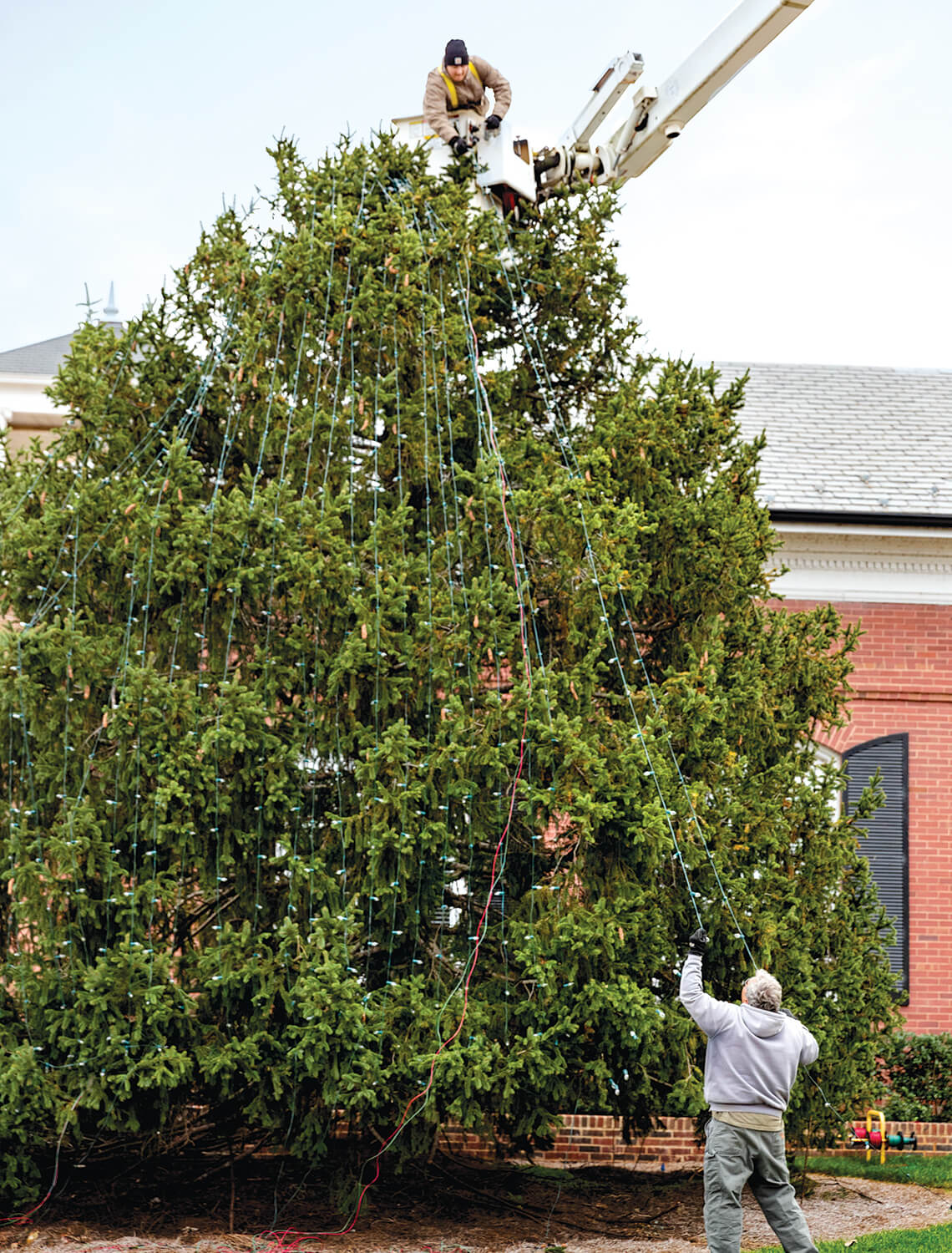 Long before 500,000 bulbs light up with the flip of a switch, before cars line up for miles to catch a glimpse of the dazzling displays around town, before the rest of the state has even thought of decking any halls, McAdenville has been preparing for Christmas. Beginning in August each year, Tim Gibson and his small crew spend six weeks untangling skeins of lights and replacing burned-out bulbs. They might chat or listen to the radio as they unwind wires, but when it’s time to wrap the lights around trees and bushes — more than 200 of them — they work in quiet concentration. For a single tree, Gibson says, it takes three people to string up the lights so that there are no gaps and no way a strong gust of wind can shake them free. Their job — part of a tradition more than 65 years strong — is to make sure every inch of this wonderland sparkles.