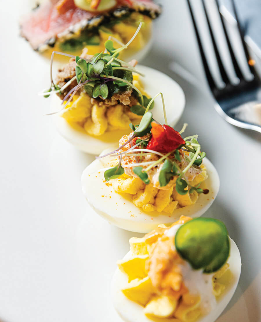 “The base of the deviled eggs is what takes them back to Grandma,” Williams says. “Everything else is a chef thing.”