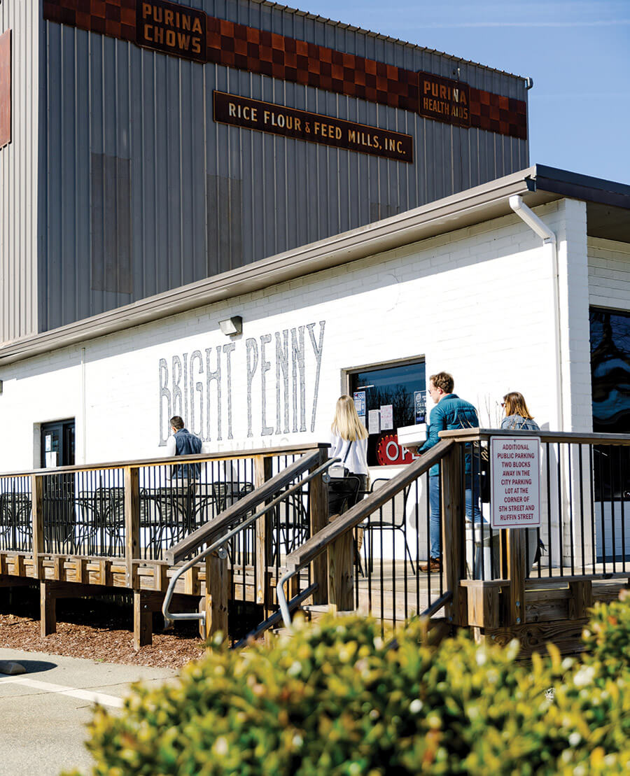 Bright Penny Brewing is housed in the former Rice Flour & Feed Mills, Inc. building in Mebane. photograph by Anna Routh Barzin
