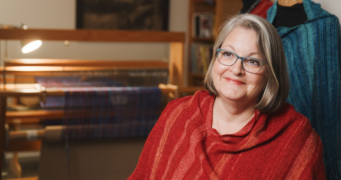 Today, Blough is a talented weaver of more than 30 years who creates beautiful, colorful wrap shawls, scarves, and more. And that vision? “A lot of the time, what I put on the loom is not what I had in my head,” she laughs. “Sometimes it’s a happy surprise and sometimes it’s a not-so-happy surprise, but it’s always very original.”