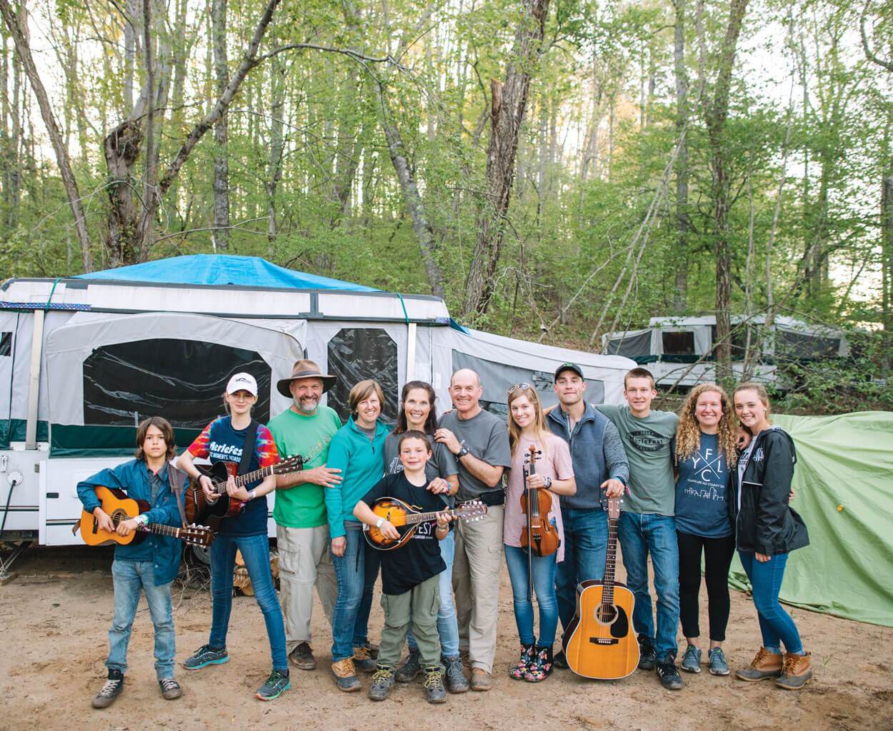 Every year, the Williams and Zenger families return to the same campsite to hone their musical tastes and talents at MerleFest. The four-day festival is a time to learn from musical legends, build family memories, and make new friends. photograph by Revival Creatives