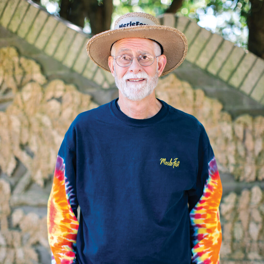 This is the Eddy Merle Watson Memorial Garden of the Senses. Its centerpiece, rooted in a bed of fragrant Sarcococca flowers, is a towering styrax tree, with white blooms that emerge in late April. This garden, or rather the idea of it, was the seed from which MerleFest sprouted. The man who planted that seed back in 1988, Frederick William “B” Townes IV, now stands amid his creation, decked out in a MerleFest T-shirt with long, tie-dyed sleeves, cargo pants, sandals, and a wide-brimmed hat that shades his bearded, 65-year-old face.
