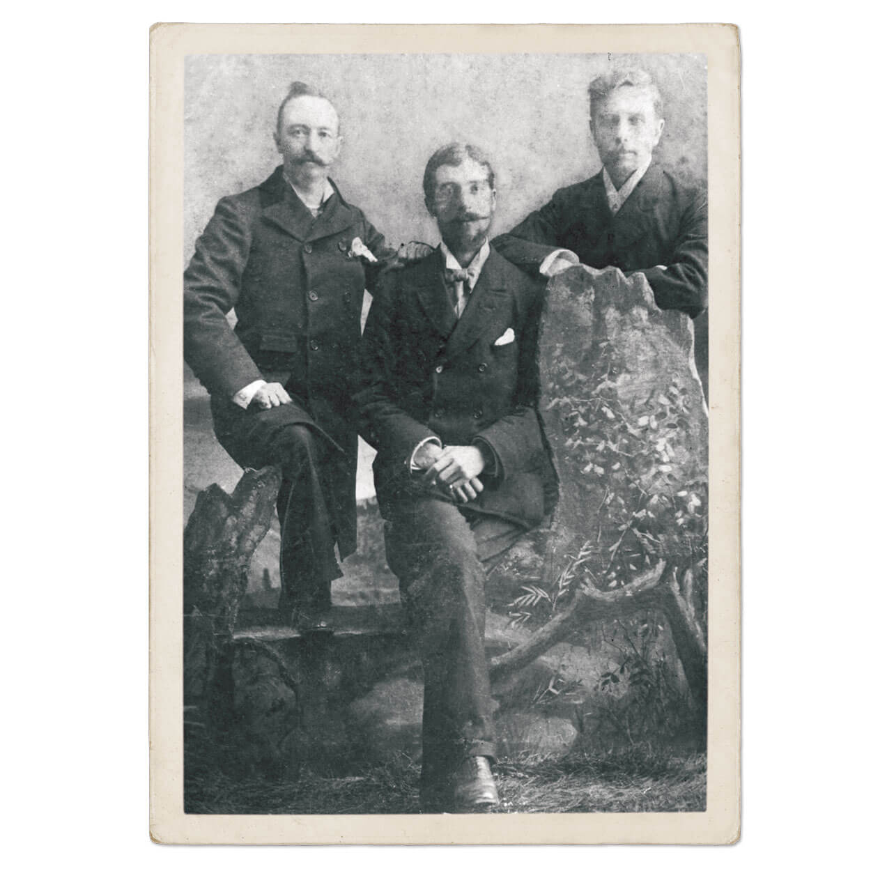 Now a historic landmark, The Narrows Dam was completed in 1917 by Alcoa. The project was launched by George Whitney (far right) in 1899, four years before he bought the ill-fated Barringer Gold Mine. Seated next to Whitney is his general manager, Egbert B.C. Hambley. photograph by STANLY COUNTY HISTORICAL CENTER
