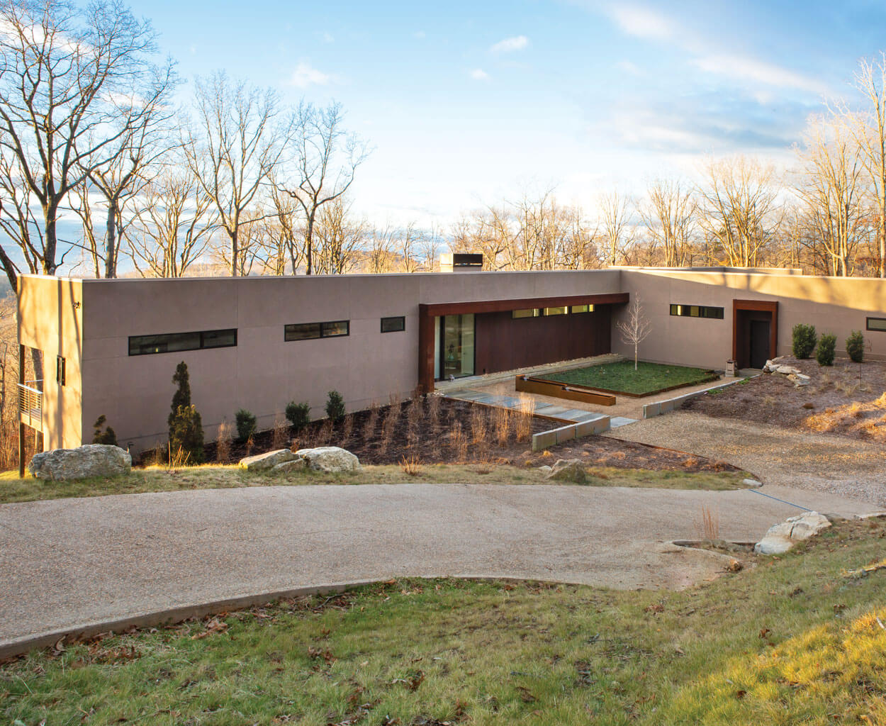“We get ‘mountain modern’ requests all the time, but this is a different approach,” Aaron says. With pitched roofs to handle snowfall and a material palette that emphasizes timber — often taken from the site itself — instead of glass and steel, “mountain modern” homes are popular in the region. But what the Chicagoans wanted was more akin to the modernism that the Wilsons had studied and admired: long, low lines, maximum light, open spaces that function and flow.