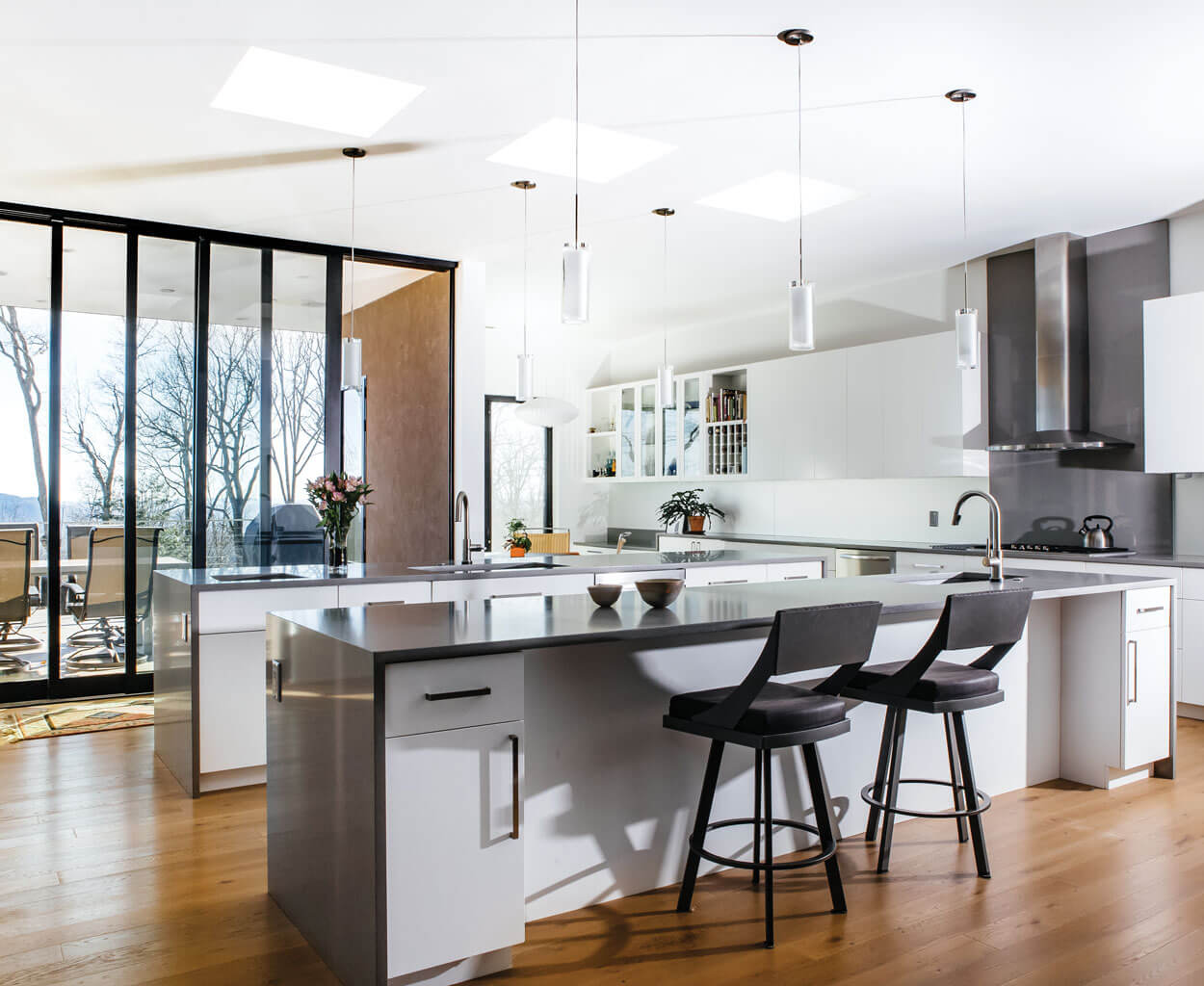 Meeting the expectations and needs of three clients was a good challenge, the Wilsons say. “It was great that they all brought something different to the table,” Calder says. “Eunice was really into the modern look, and Mike wanted to be sure that everything would function and be low-maintenance, and Rosaire was often in the middle, which is an important role, too.”
