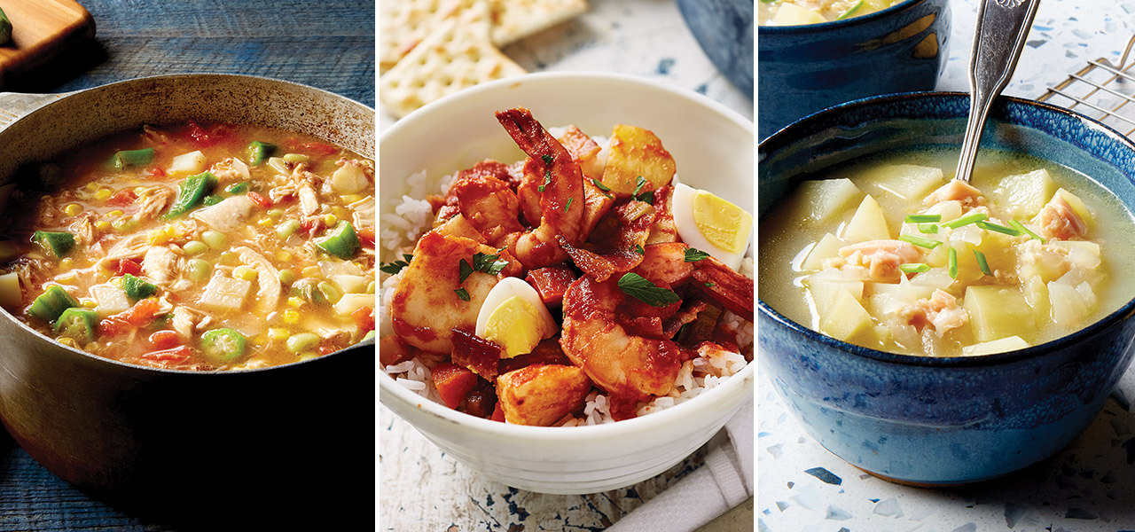 From a mountain buttermilk soup to a comforting coastal chowder, these seven recipes that we claim as our own will keep you warm this winter.
