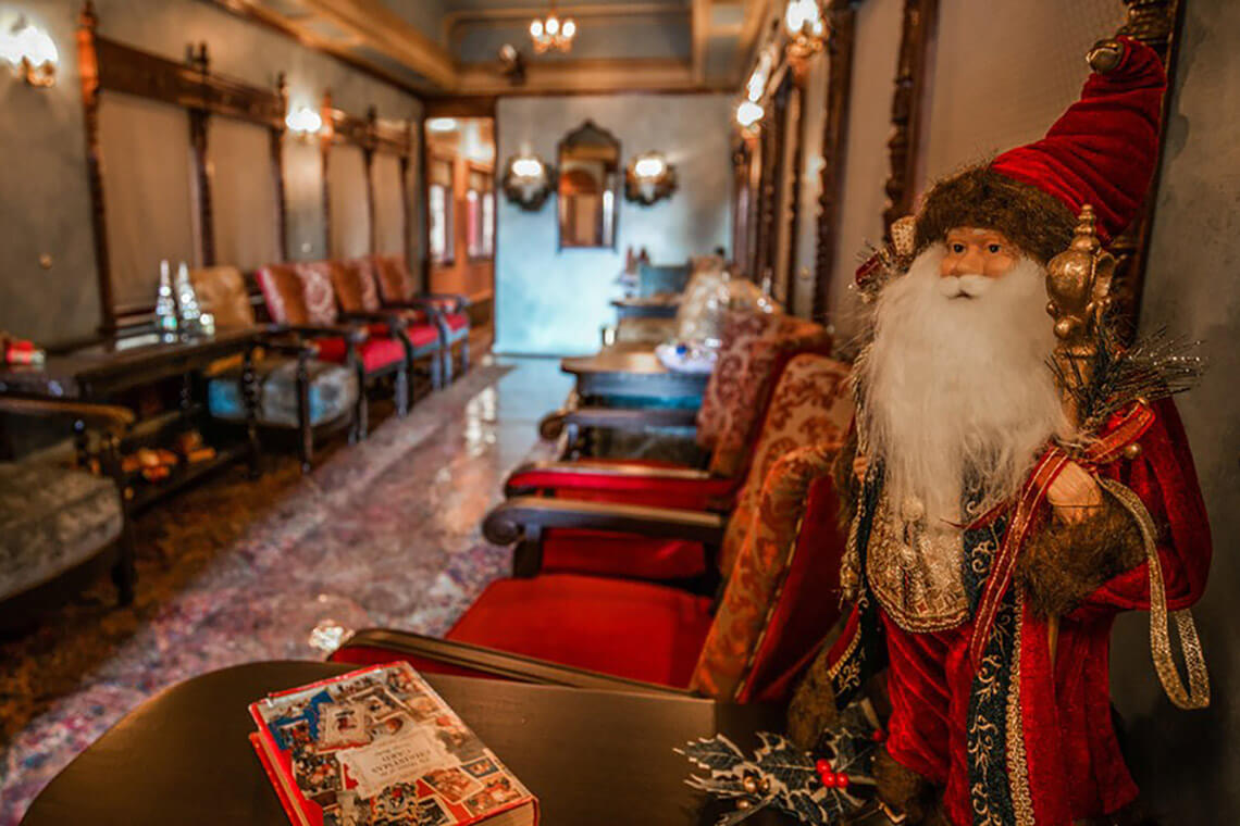 Each section of the Carolina Christmas Train features different decorations so that every space has its own distinct, festive feel. Photography courtesy of Visit Pinehurst, Southern Pines, Aberdeen