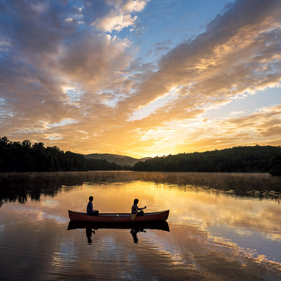When exploring the great outdoors together, mother and daughter enjoy activities away from the campsite — like a quiet canoe ride as the sun rises over Price Lake. photograph by Thomas Moors