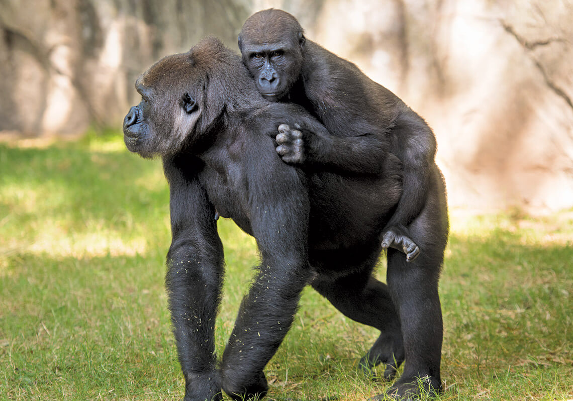 During their daily morning rounds at the Forest Glade habitat, zookeepers usually find 10-year-old Bomassa snuggling with his mother, Jamani — both western lowland gorillas. Jamani was born and raised in California and is still a beach girl at heart. On chilly mornings, she can be found curled beside a heater with her son, who has a reputation as the troop clown, always playing or goofing off. Meanwhile, Bomassa’s half-brother Apollo watches as his mother, Olympia, works a food puzzle. Even though Bomassa and Apollo are young adults, they still curl up with their mothers — a heartwarming reminder that no matter the species, everyone needs their mom.