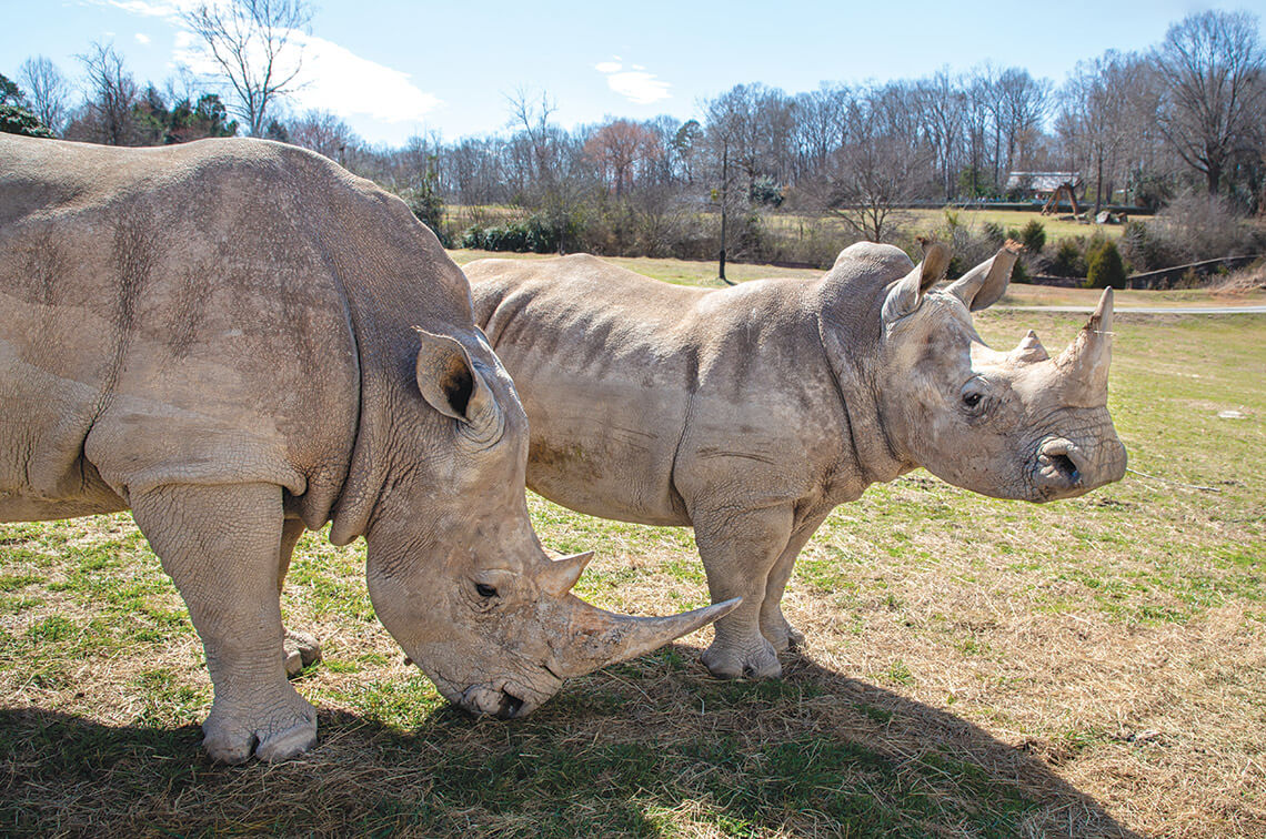 Like most mothers and daughters, Linda and 2-year-old Jojo bond by wallowing in the mud and scratching their backs on low-hanging tree branches. Well, maybe like most mother-and-daughter rhinoceroses. Linda is the herd matriarch — the most dominant rhino at the NC Zoo — but that doesn’t stop Jojo from thrusting her still-stubby horn in the air and mock-charging her mama. Jojo is the youngest of four female southern white rhinos born at the zoo in the span of just a few years, and she has accepted her role as rhino royalty with as much grace as a 2,400-pound animal can manage. After playtime, the pair head toward the gate of their 40-acre reserve, where a caretaker arrives with a mid-morning snack and a bristled brush. Since Jojo and Linda were both raised in human care, belly rubs from the zookeepers make for the perfect mother-daughter massage session. — Rachel Malmin
