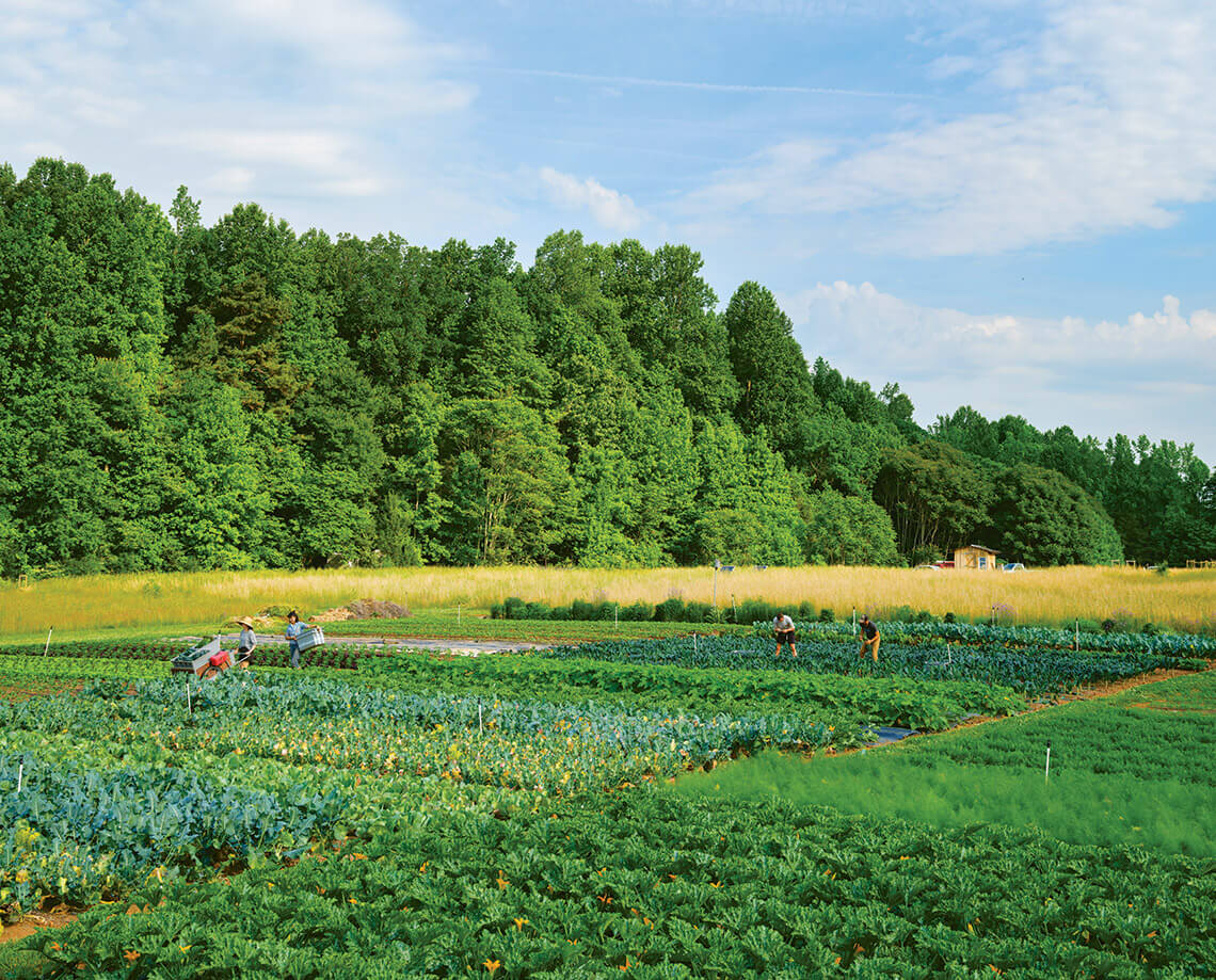 As she, Jenkins, and their team hurry about the farm’s grand hoop house, preparing boxes for the afternoon’s CSA deliveries to Durham, Chapel Hill, and Hillsborough, the pair are grateful for their farm’s growth — and their family’s growth. This year, the couple welcomed their first child, Cal.