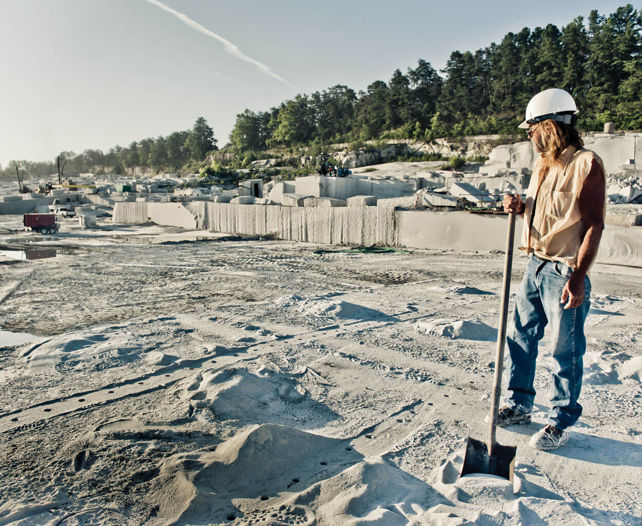 Some of the granite harvested by Jerry McBride (above) and other employees of the North Carolina Granite Corp. turns into buildings that stand right here in Mount Airy. photograph by Emily Chaplin