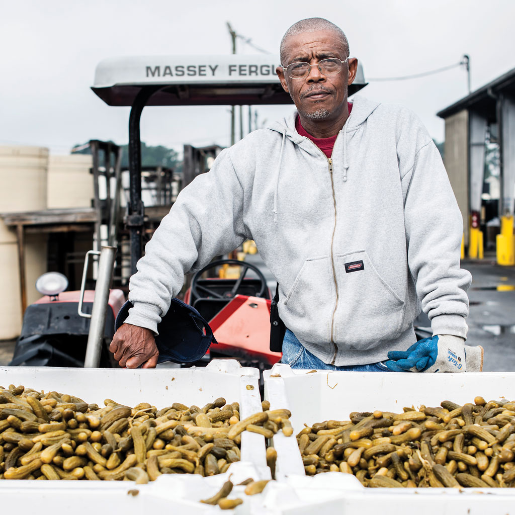 David John Miller, a retired Mt. Olive employee, returns in green season, like a lot of other Mt. Olive employees, to ensure that cucumbers become pickles. photograph by Lissa Gotwals