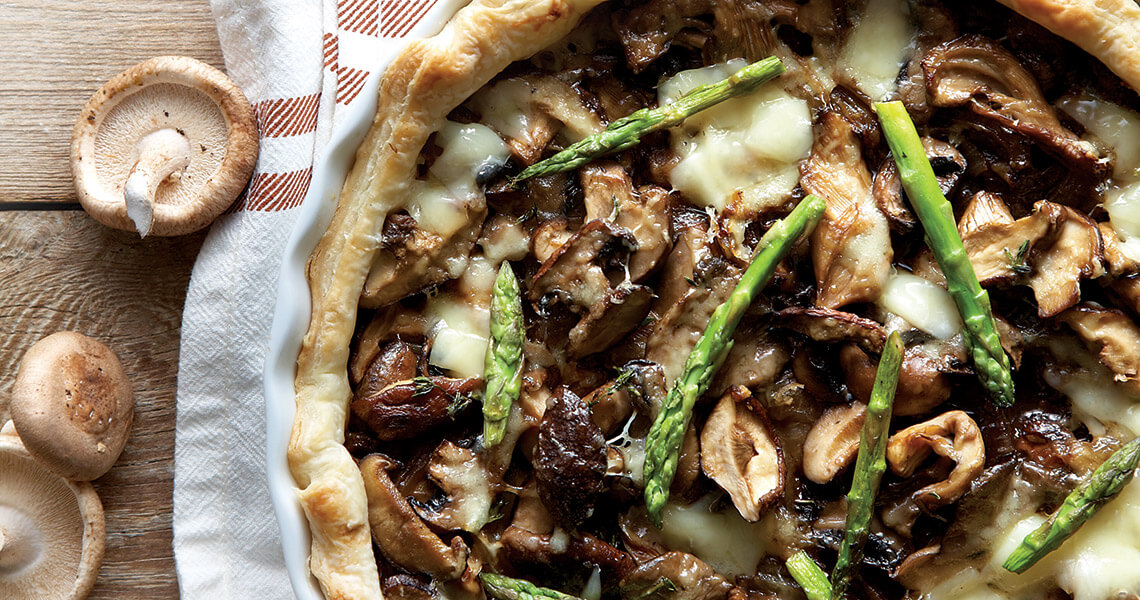 Drizzle balsamic glaze over the onions. Remove pastry from refrigerator and fill with mushrooms and onions. Sprinkle cheese evenly over mushroom and onion mixture.