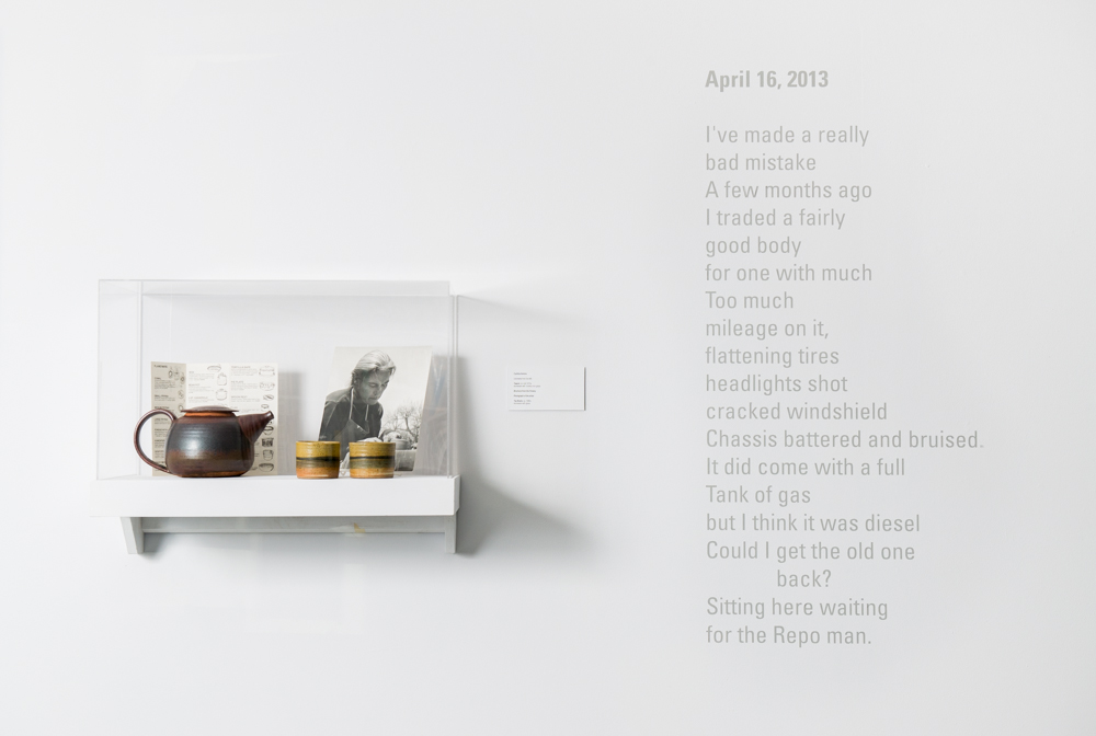 Part of the current exhibit “Cynthia Homire Vision Quest” curated by Connie Bostic. “The exhibition examines the work of poet, potter and visual artist Cynthia Homire, a Black Mountain College alumna, now in her early 80s. Homire was a student at BMC from 1950-1954.”