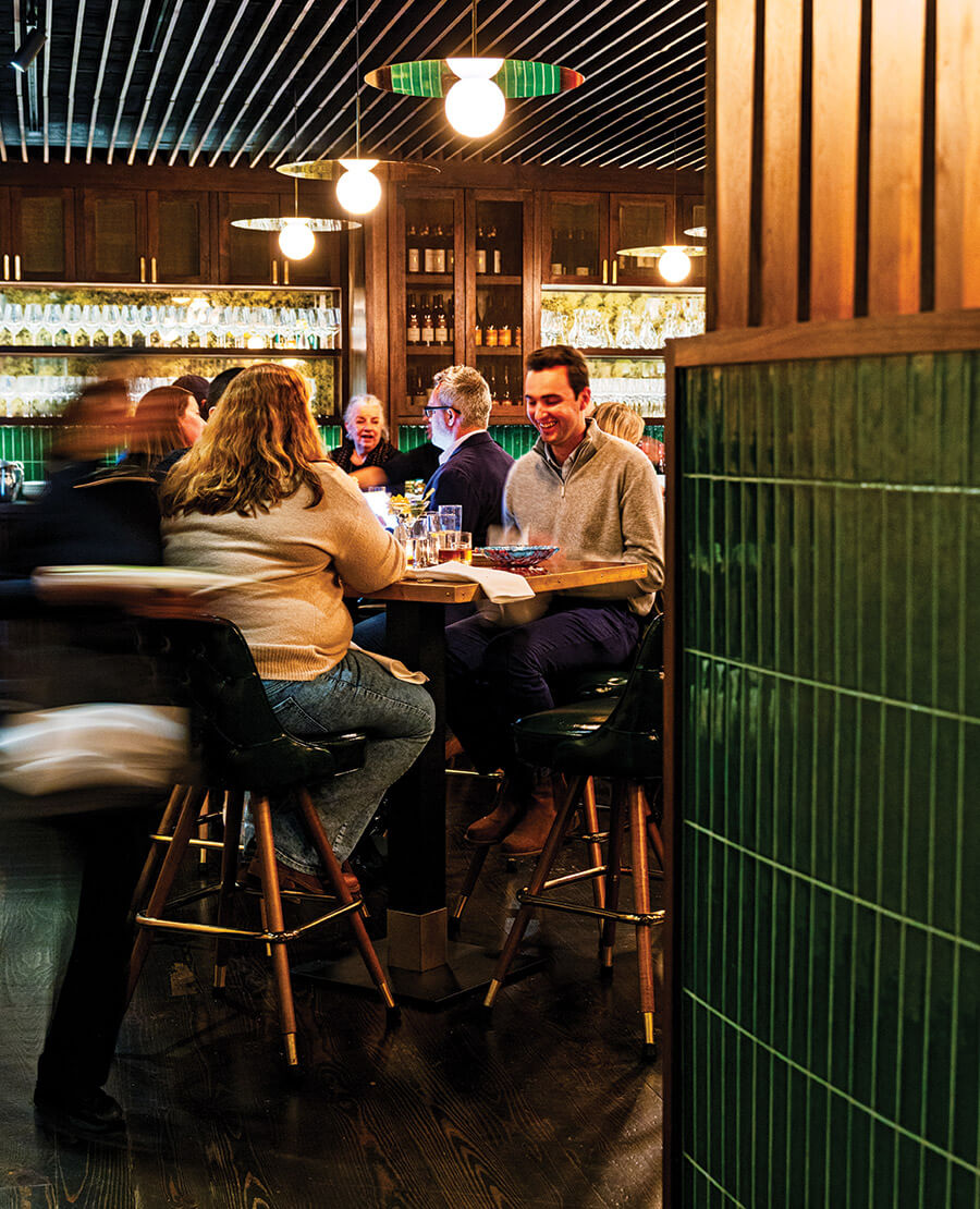 Vintage accents, from tiled walls to vintage wood trim around the bar, set the stage for a dining experience at Nanas. photograph by Anna Routh Barzin