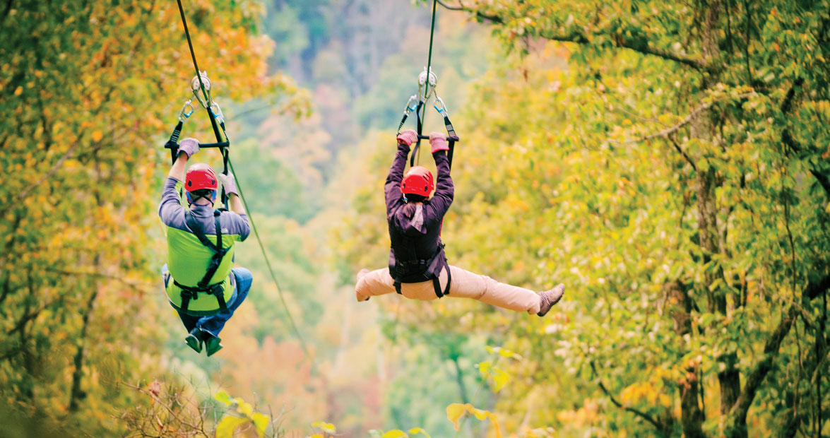 Navitat has two “experiences”: The Moody Cove Adventure, which is a tree-based tour using zips, bridges, and ladders, and the Blue Ridge Experience, which consists of only zip lines, crisscrossing ridge to ridge over various coves. Groups of eight normally make up a tour, which takes two to two-and-a-half hours, and on the busiest of days, 350 adventuresome souls — sometimes as old as 92 — will climb, zip, scale, whoosh, and whiz over the wilderness. And yes, someone makes safety checks of everything involved, from equipment to platforms. Every day.