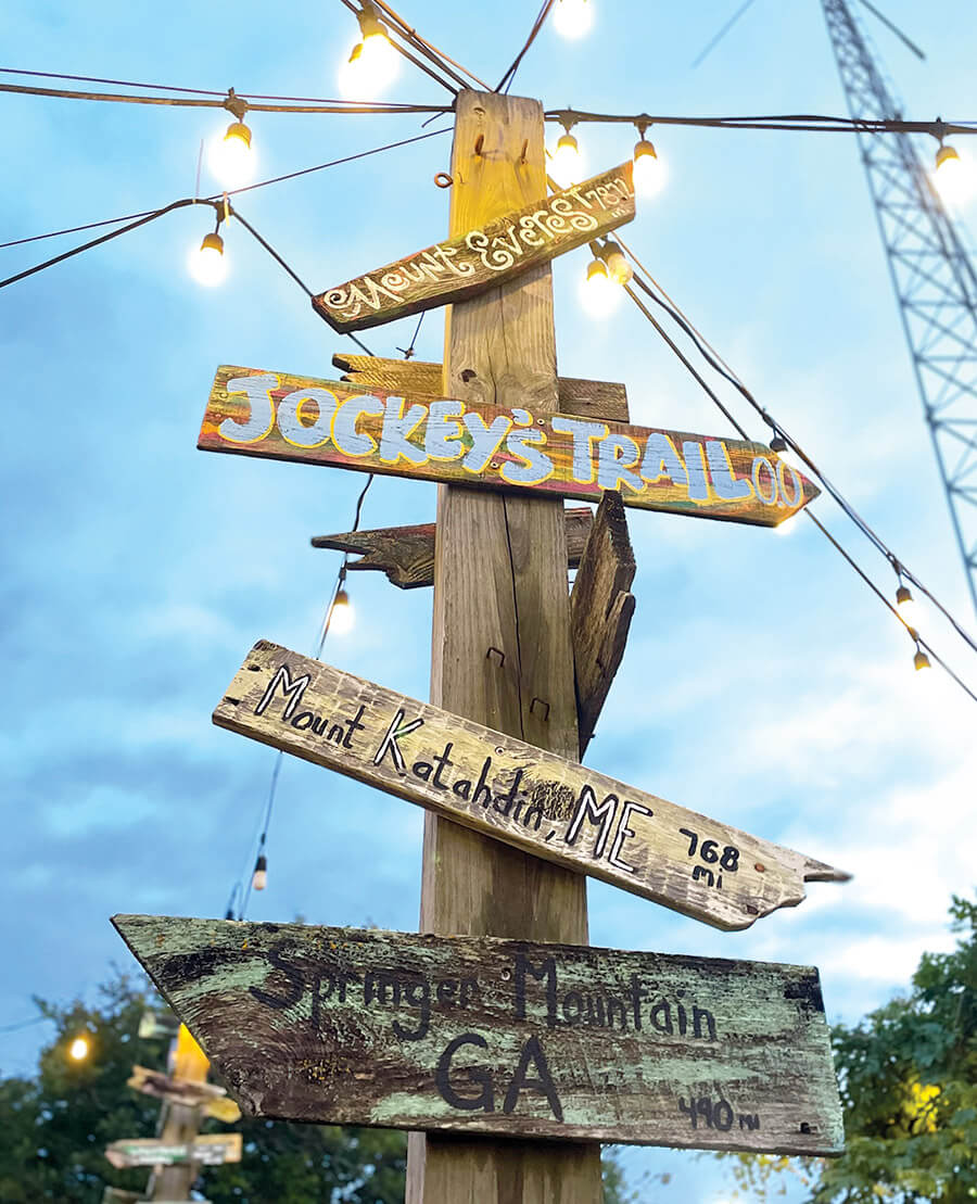 At Outer Banks Brewing Station in Kill Devil Hills, a marker points to Jockey’s Trail. photograph by LUKE HALTON/JOCKEY’S TRAIL