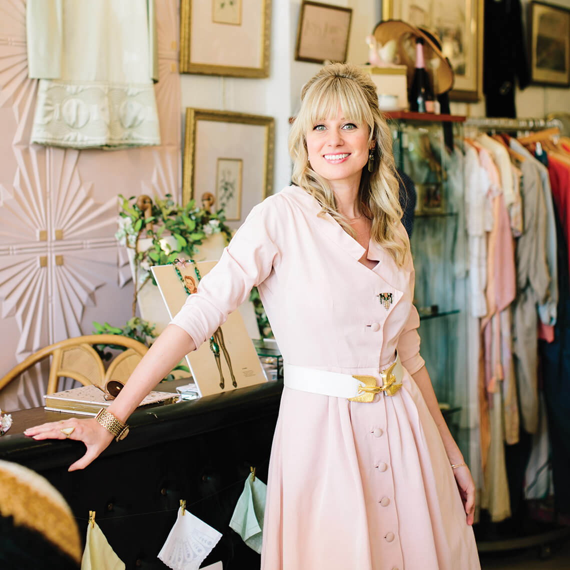 After working in the fashion industry in New York City, local style editor and fashion consultant Jess James opened her shop on Castle Street in 2016, where she hosts fashion shows, style swaps, and trunk shows. Her boutique is filled with her favorite vintage clothing and accessories, as well as antique books and prints.