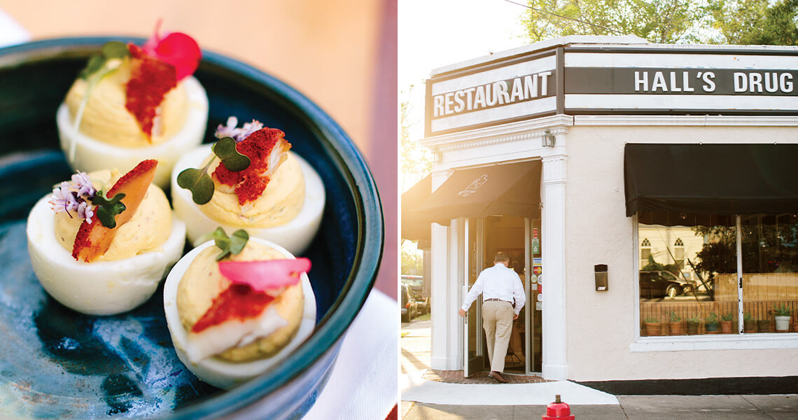 Located in the former Hall’s Drug Store, Rx is dedicated to working with local, organic farmers and fishermen. Try one of Chef James Doss’s modern Southern recipes, like deviled eggs with smoked triggerfish and basil, or enjoy a seasonal “elixir” or “sweet prescription” from the cocktail and dessert menus.