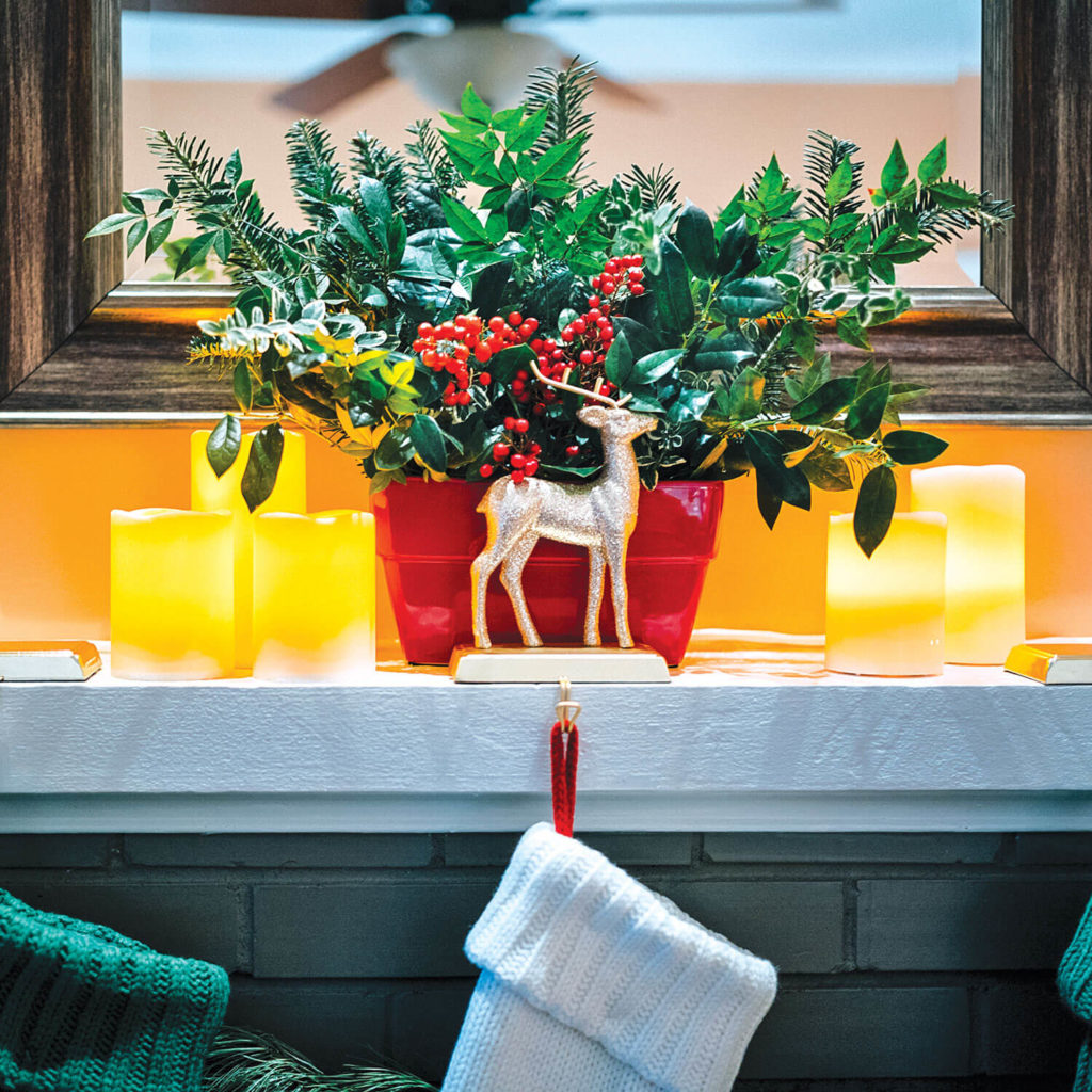 Appreciative sighs rise up around the dining room table. No, not for the green bean casserole. In fact, there’s no food here at all. Instead, admirers are snapping photos of a trailing blanket of evergreen boughs and red roses, perfectly placed china, and glittering pine cones. Those admirers?