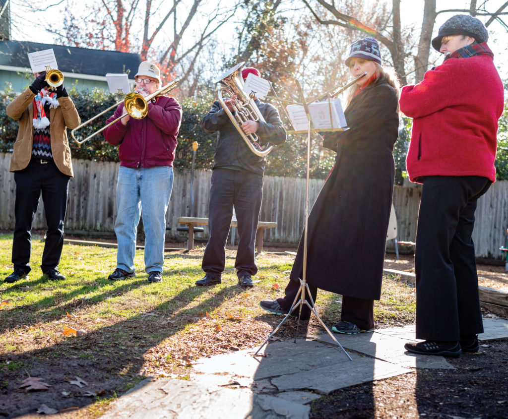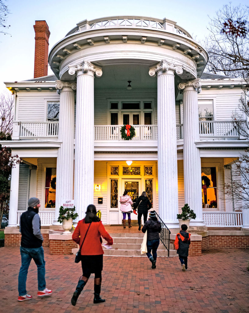 Friendly and festive strangers, who are wandering through one of the many private homes in Raleigh’s historic Oakwood neighborhood that open their doors to the public each December.