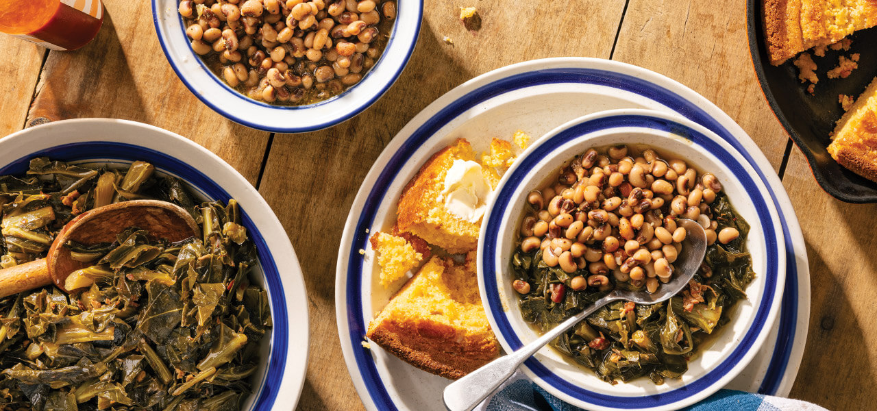 On New Year’s Day, families across North Carolina sit down to dinners of ham, black-eyed peas, collard greens, and corn bread. The superstitious tradition of the New Year’s table supposedly brings prosperity for the coming year, although no one is quite sure why or even where the tradition originated. Some say the financial good fortune comes because peas look like coins and collards resemble folding money. Others claim it’s an inexpensive meal that sets a frugal tone. The meal itself has changed a bit over the years, too. Luck, it seems, is in the black-eyed pea of the beholder.