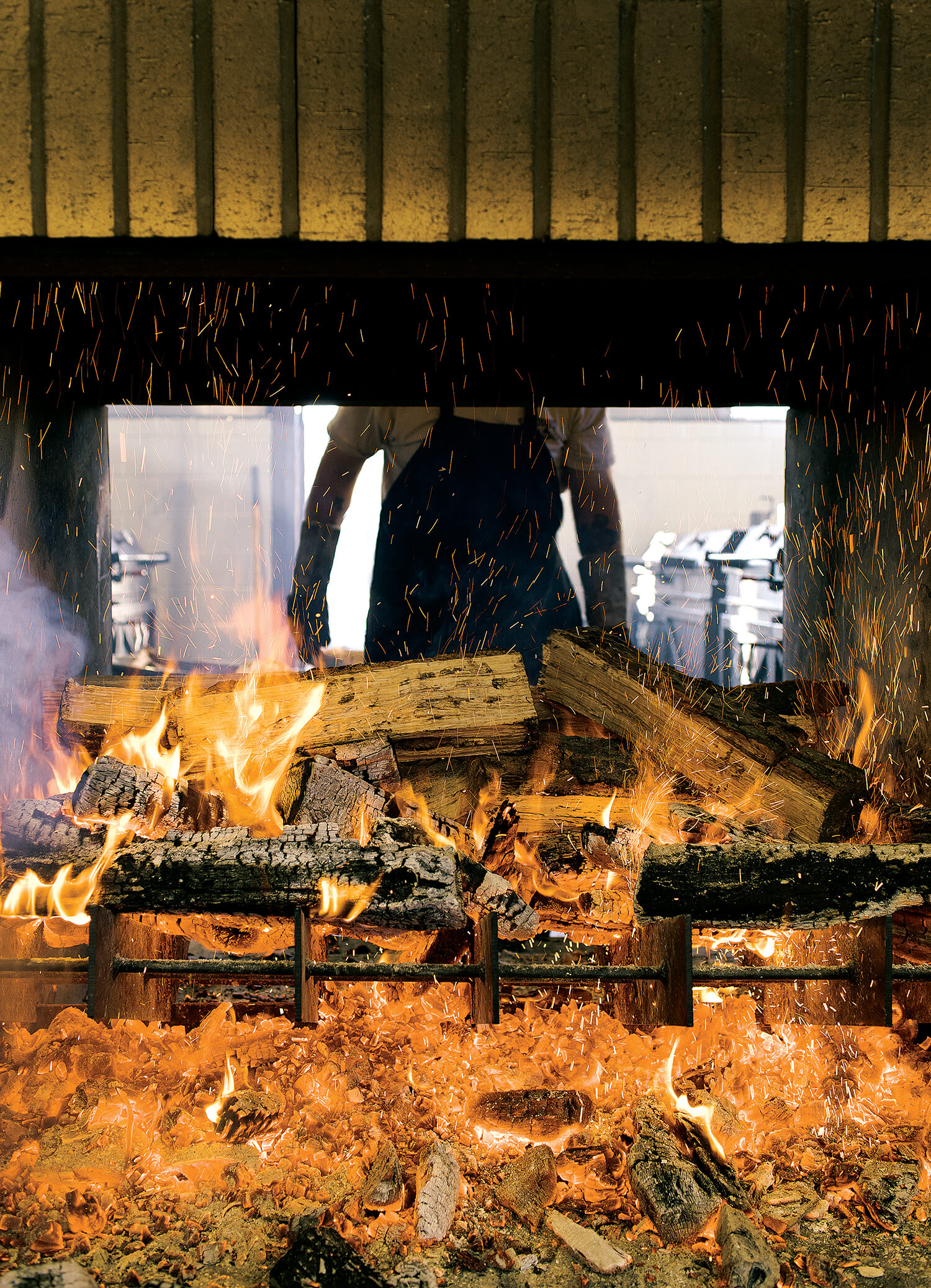 You need a spray bottle — to put out hot spots, to bring the burn back down to a slow burn, to incite smoke. You shovel the coals back and forth; if you’re playing the home game, you push the fire around the bottom of the grill, adding, subtracting. There’s a fine line between messing with the fire and messing with the fire too much. That line’s in a different place every time. The fire is the art part of all of this. Fire — big fire, pour-a-beer-on-it fire — is what you get if you’re not paying attention. Smoke is what you get if you’re doing it right.