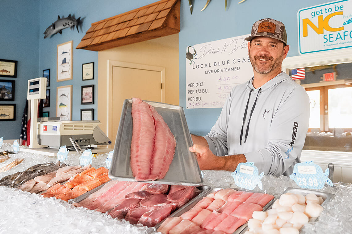 Mahi mahi (held by Dockside owner Brooks Keith) is one of many freshly caught offerings at this family-run market. Take home a few of the homemade appetizers and sides — hush puppies, anyone? — and you’ve got dinner sorted.
