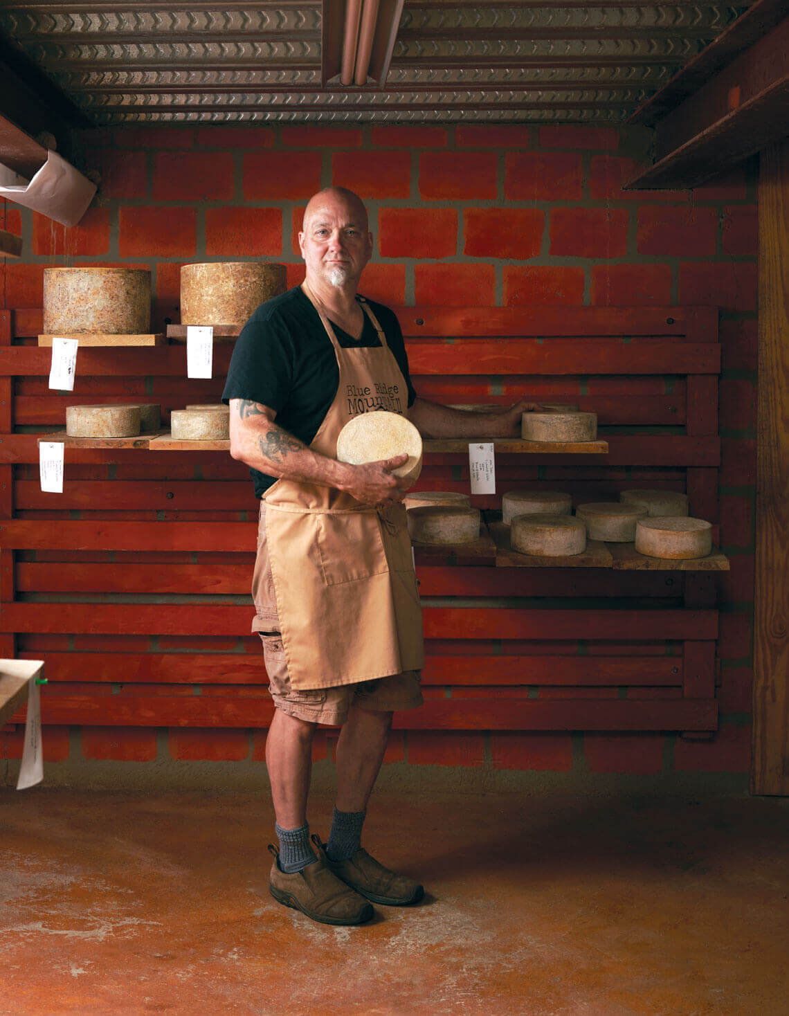 In an underground cave in Buncombe County, Victor Chiarizia’s cow’s milk cheeses age anywhere from three months to more than a year. Chiarizia, a glassblower for 45 years, inherited a love of making things from his father, a stonemason and plasterer who emigrated from Italy. As a boy, Chiarizia would help his dad make cheese in their family home. They weren’t using the finest ingredients or creating the fanciest cheeses, but making a simple mozzarella or farmer’s cheese brought his father joy. Today, Chiarizia applies modern science to his cheesemaking, but, he says, “I still have the visions of how they do it in the old country.” To emulate the techniques used in France and Italy, he built his cave with stone walls. When it rains, water seeps in, fostering the growth of natural flora and imparting a taste of the Blue Ridge.