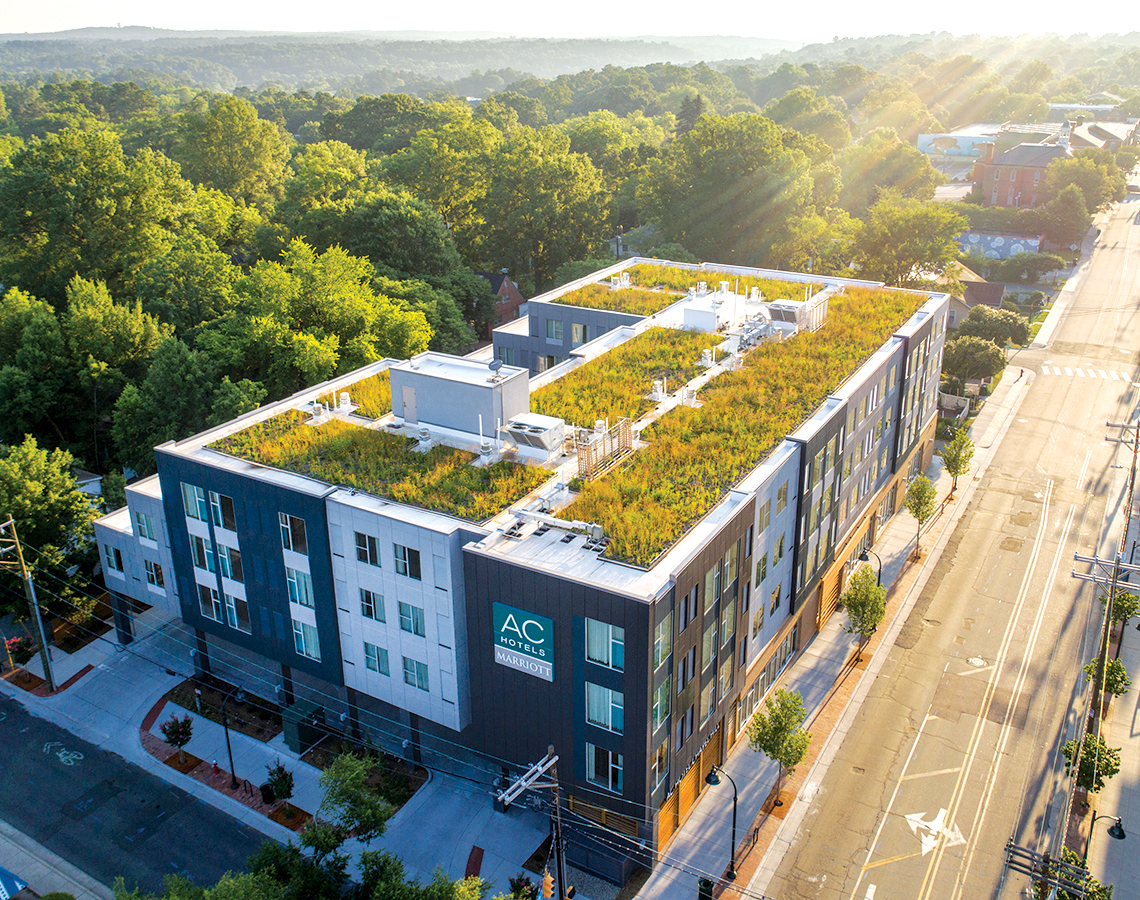 Nearly 20 years ago, Kate and Emilio Ancaya noticed a trend emerging in other parts of the country: rooftops covered in brushy grasses and colorful perennials. They were intrigued by these “green roofs” and the environmental and economic benefits they provided: reduced stormwater runoff, lower air-conditioning costs, and longer lifespans than other roofs. So the couple decided to try it out on their garden shed. In 2006, they founded Living Roofs, and now their designs can be seen throughout the Southeast, from a tropical living wall at Cúrate Bar de Tapas in Asheville to the grassy meadow roof of the AC Hotel by Marriott in Chapel Hill. “We liked the idea of experimenting with a new concept,” Emilio says, “and finding our own way to make a positive impact.”
