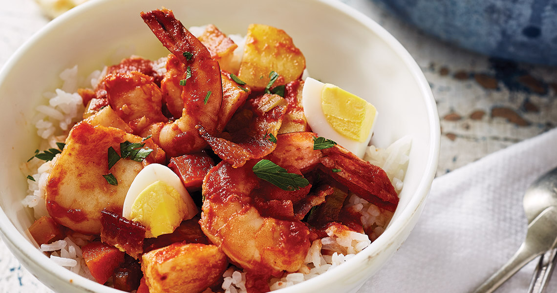 Gently stir the fish into the stew. Arrange the shrimp over the top of the stew. Bring to a gentle simmer, cover the pot, and let cook until the fish and shrimp are barely opaque in the center, about 5 minutes.