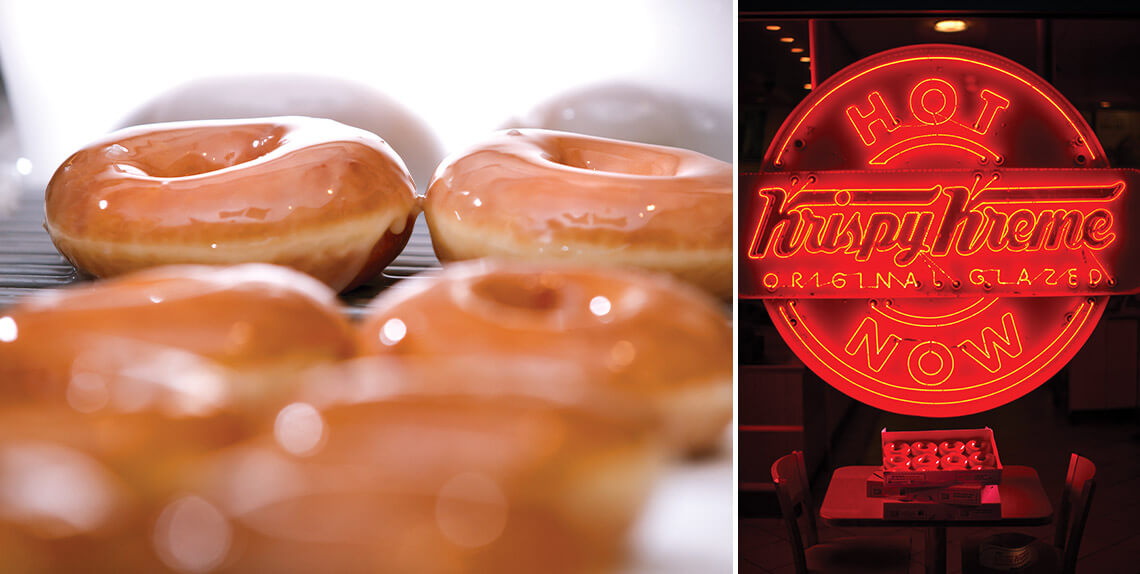 Not willing to leave hot doughnuts to chance? The Krispy Kreme app tells users when a Hot Light is illuminated near them. Vernon Rudolph would be proud. photographs by Jerry Wolford & Scott Muthersbaugh