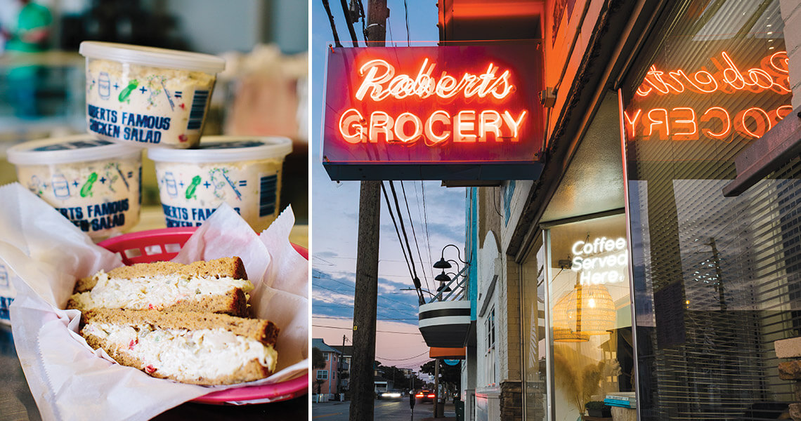 The chicken salad at Roberts Grocery is as legendary as the store’s sign. On busy summer weekends, beachgoers gobble up hundreds of sandwiches. photographs by Matt Ray Photography