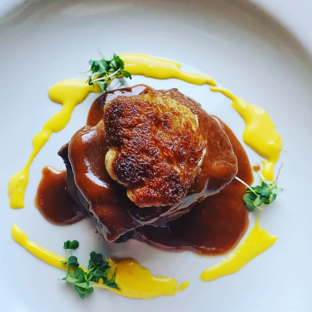Short Rib with Borrowed Land Farm’s Lions Mane Mushroom from Old North State Winery. photograph by Old North State Winery