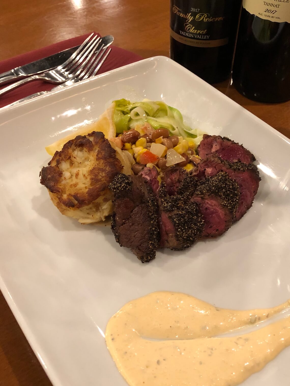 A meal at the Harvest Grill at Shelton Vineyards. photograph by Shelton Vineyards