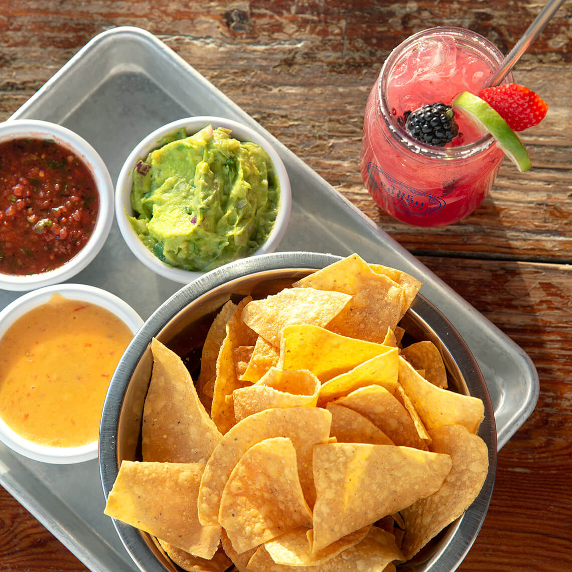 It’s not a proper Tex-Mex meal unless you’ve had queso, salsa, and guacamole — simply called the “Three Amigos” at The Porch. The mixed berry margarita (made with fresh fruit juice) is always a good choice, too. photograph by Stacey Van Berkel