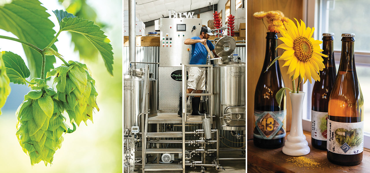 Every week, Carrieann and Jon Schneider of Sideways Farm & Brewery make one or two new limited-release beers using as many ingredients from their farm as possible — which now include hops. photograph by Tim Robison