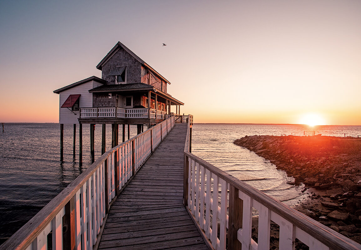 Billy Stinson was devastated when, in 2011, Hurricane Irene swallowed up the beloved early-1900s cottage in Nags Head that his family had owned for nearly half a century. Stinson’s Ranch was a beauty: Perched on pilings surrounded by the sloshing waters of Roanoke Sound and attached to the shoreline by a 55-foot-long pier, it had dramatic views of sound and sky, of seagulls and sailboats, and a canvas of stars at night. The inside was cozy and eclectic, a reflection of the retired Greenville art teacher’s creative spirit. On summer evenings, Billy, his wife, Sandra, and their two daughters would play acoustic guitars and sing or create art together against the backdrop of warm, brown beadboard walls and ceilings. “It had a personality,” Billy lamented to a local news site after Irene destroyed the place. “It sure did.”