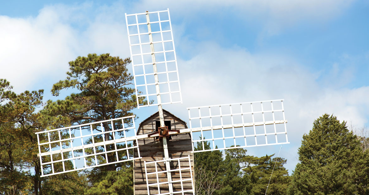 Lynanne Wescott was pregnant, and her mind had turned to that staple of storybooks: windmills. Not the towering structures we associate with Holland, but a far older type — known as a post-mill windmill — whose history stretches back to the 12th century. Quaint and compact, they’re “a dime a dozen in England,” Wescott says. They’d been brought to America as early as 1621 for milling and irrigation, and, in the 1970s, Wescott decided that one belonged on the Outer Banks, too.