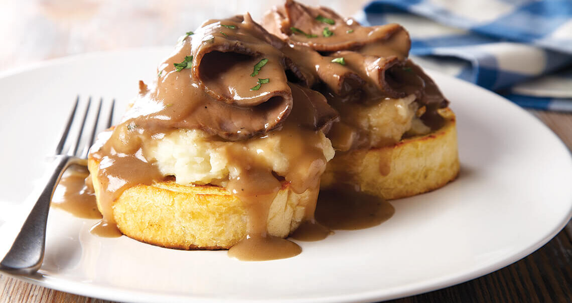 To assemble: Place a scoop of mashed potatoes on each piece of toast. Top with slices of roast beef and gravy. Sprinkle with parsley.