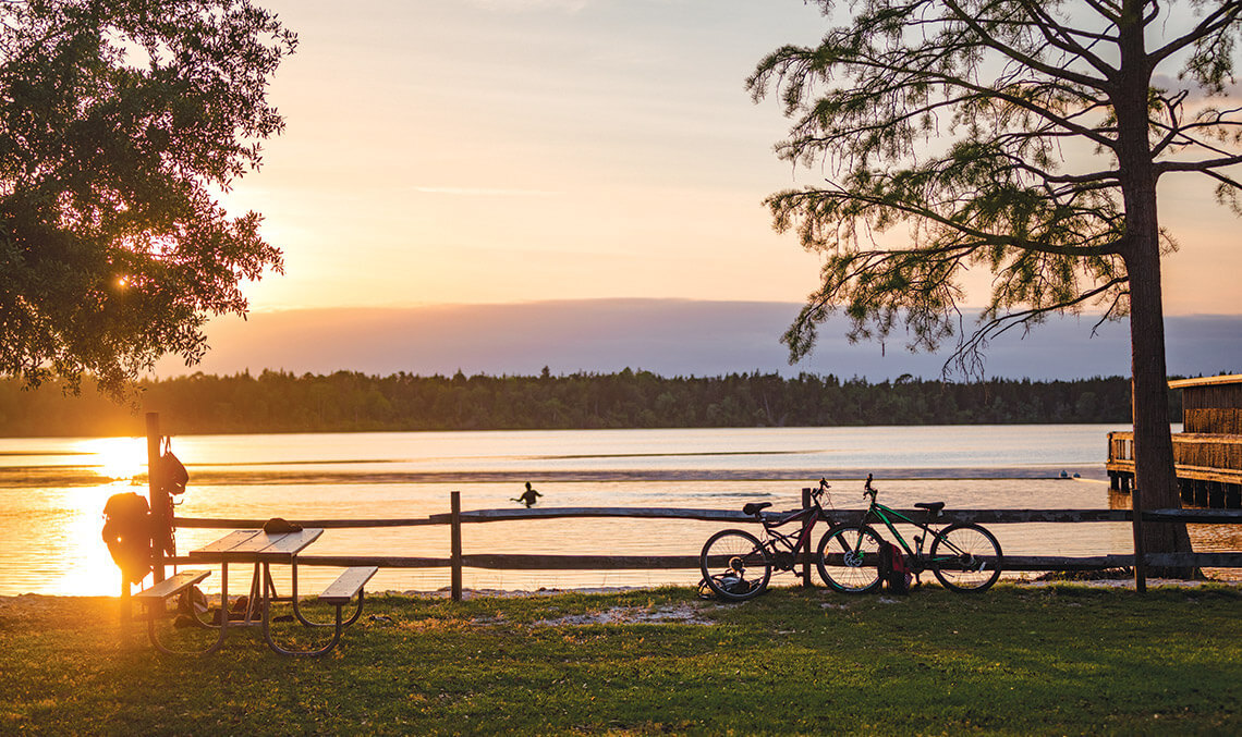 With little development around, the Frisco Campground on Cape Hatteras National Seashore offers the best of a beach vacation: sun, surf, sand, and stars (oh, and the convenience of Hatteras just a few miles away). Reserve a spot here to enjoy your days in the water and your nights stretched out on the sand watching the stars wheel above you. It’s plenty dark here, and if you’re a night sky photographer, you can get some remarkable pictures. But even without a camera, you’ll carry these sights with you for a lifetime. Bring your binoculars or telescope and a star chart (or star chart app) to make the most of the view. This campground is totally exposed — no trees, no shade — but each site does have a grill, picnic table, and level tent pad, and there is potable water at the bath house as well as restrooms and showers.